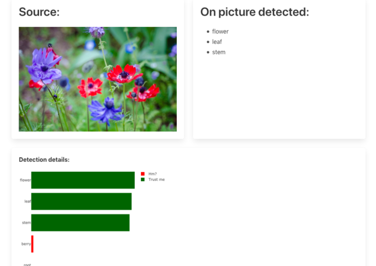 This is a fun web application which detects different parts of plants from pictures. It works on desktop as well as on mobile.